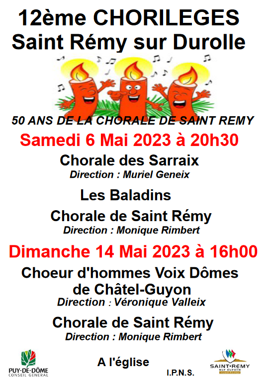 Le 14/05/2023 en l’église de St-Remy sur Durolle (63) : Concert avec la Chorale de St-Remy.