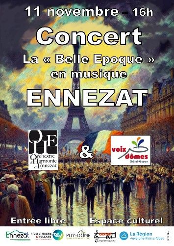 Le 11/11/2024 à 16h à l’Espace Culturel d’Ennezat (63) : L’orchestre d’harmonie d’Ennezat nous invite à son concert célébrant ses 140 ans d’existence.